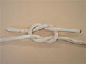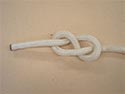 The reef knot is used to tie two similarly sized ropes together. It is best served as a parcel knot or to tie a triangular bandage in first aid. If put under too much strain though it will jam and be difficult to untie. To make the reef knot a very simple way to remember is "right over left, then left over right".
